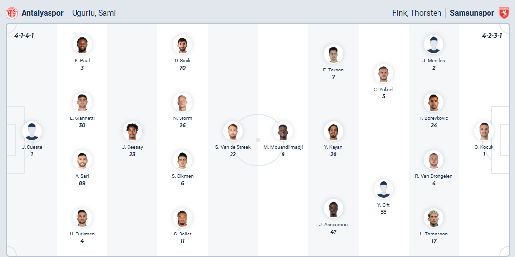 Antalyaspor không phải đội bóng mạnh của Thổ Nhĩ Kỳ, họ đang đứng thứ 11 ở Super Lig, vị trí không cao nhưng vẫn ổn hơn những gì họ làm được mùa trước. Các cầu thủ của HLV Sami Uğurlu muốn làm tốt ở cả cup Quốc gia nhưng họ đang chơi rất tệ khi thua cả 3 vòng đấu gần nhất. Phong độ của các cầu thủ Antalyaspor thời gian gần đây cũng không hề tốt nên đương nhiên họ không được đánh giá cao khi đấu với Samsunspor ở cup Quốc gia. Nhưng nhiều khả năng lợi thế sân nhà và những thành tích trong quá khứ sẽ là điểm tựa để Antalyaspor giành kết quả tích cực.